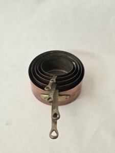 Lot de 5 casseroles en cuivre avec poignées en laiton, sauteuses vintage