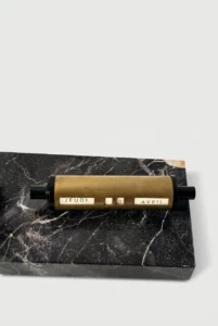 Calendrier perpétuel de bureau vintage à figurine femme sur socle marbre noir