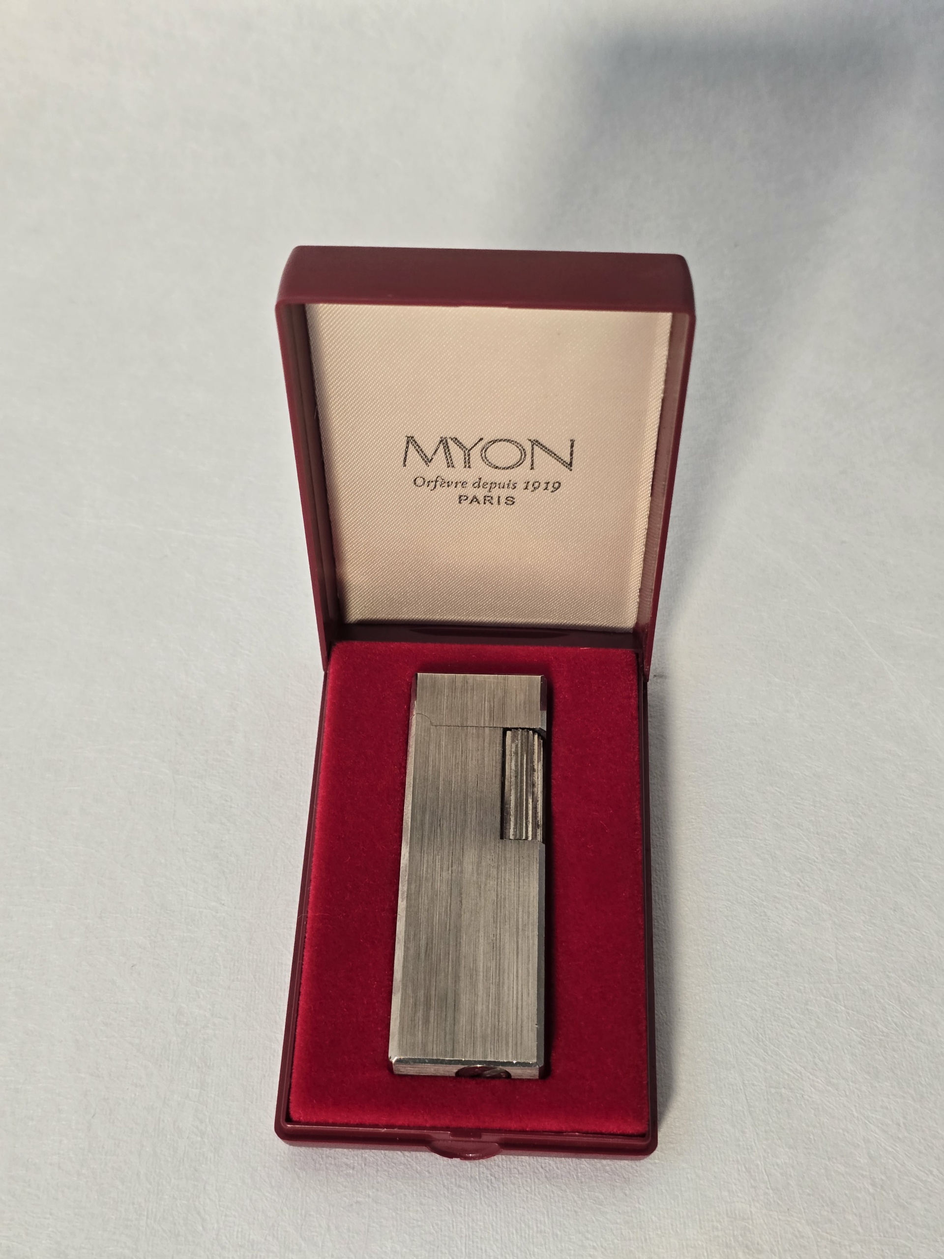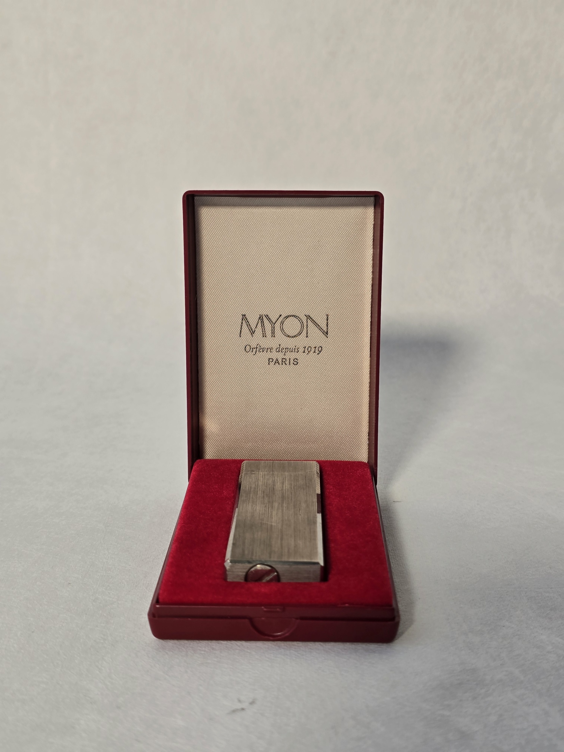 Briquet MYON Paris vintage avec boîte d’origine – Métal brossé