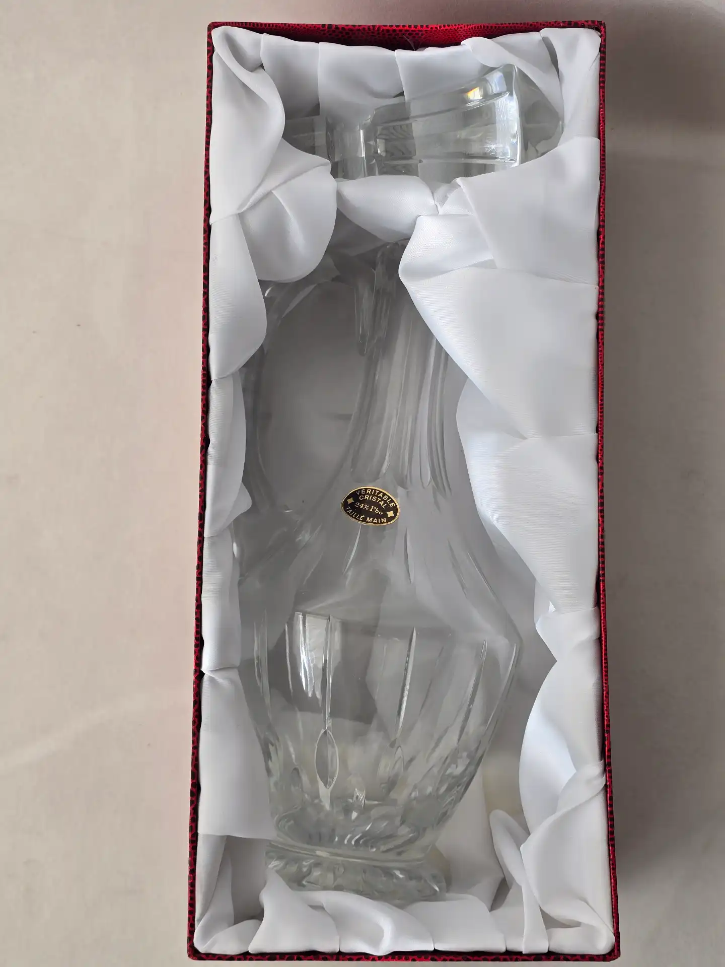 Cette carafe en cristal véritable est une création artisanale de la Cristallerie de Lorraine, maison française reconnue pour son savoir‑faire dans le cristal au plomb. Entièrement soufflée à la bouche puis taillée à la main, elle incarne l’élégance classique du cristal lorrain, avec une brillance exceptionnelle et une pureté parfaite.