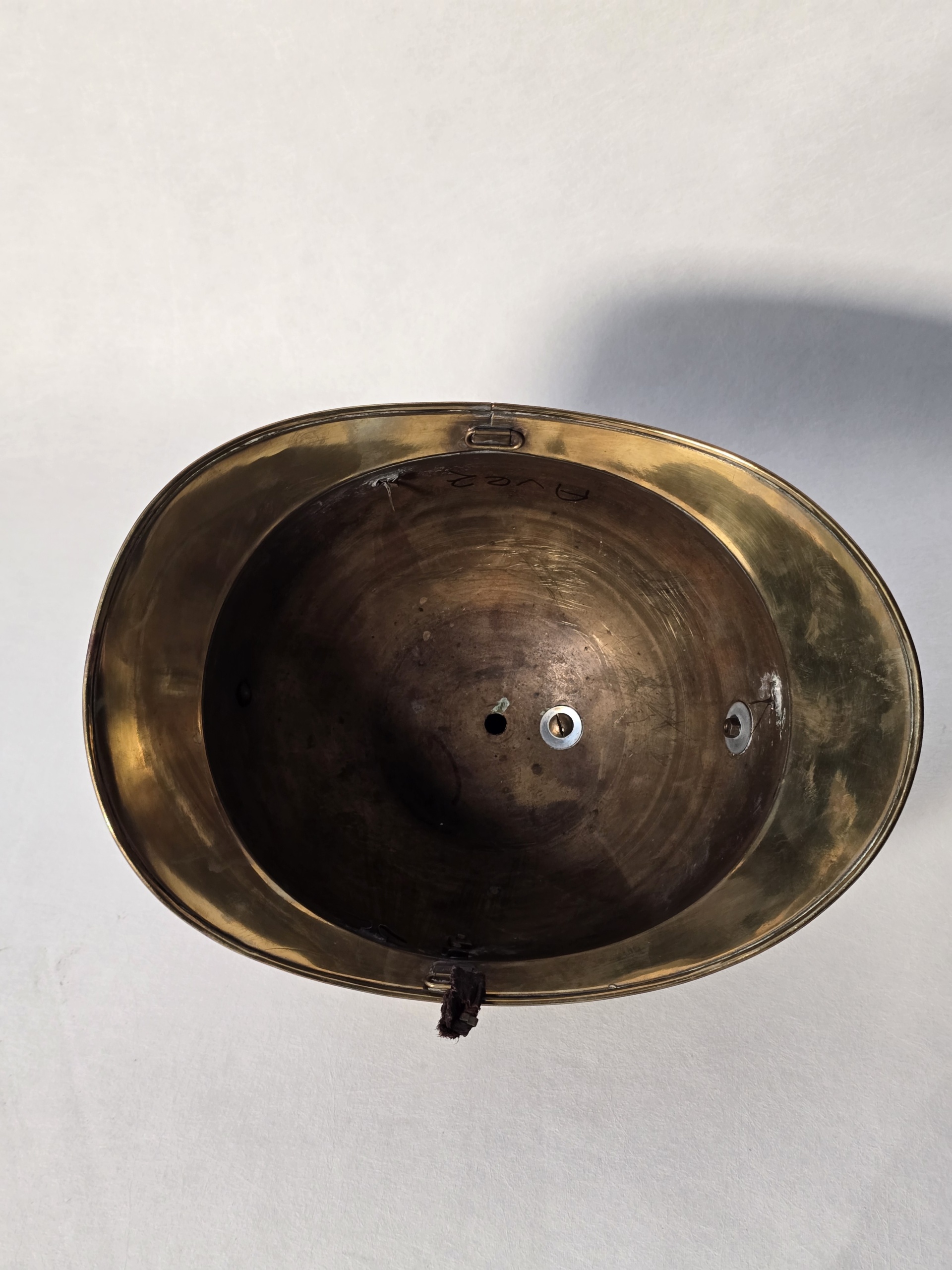 Casque Sapeurs Pompiers de la ville Sissonne – modèle 1895 en laiton sans sa lanière et sans protection intérieure. Idéal collectionneur de militaria ou casques des pompiers anciens.