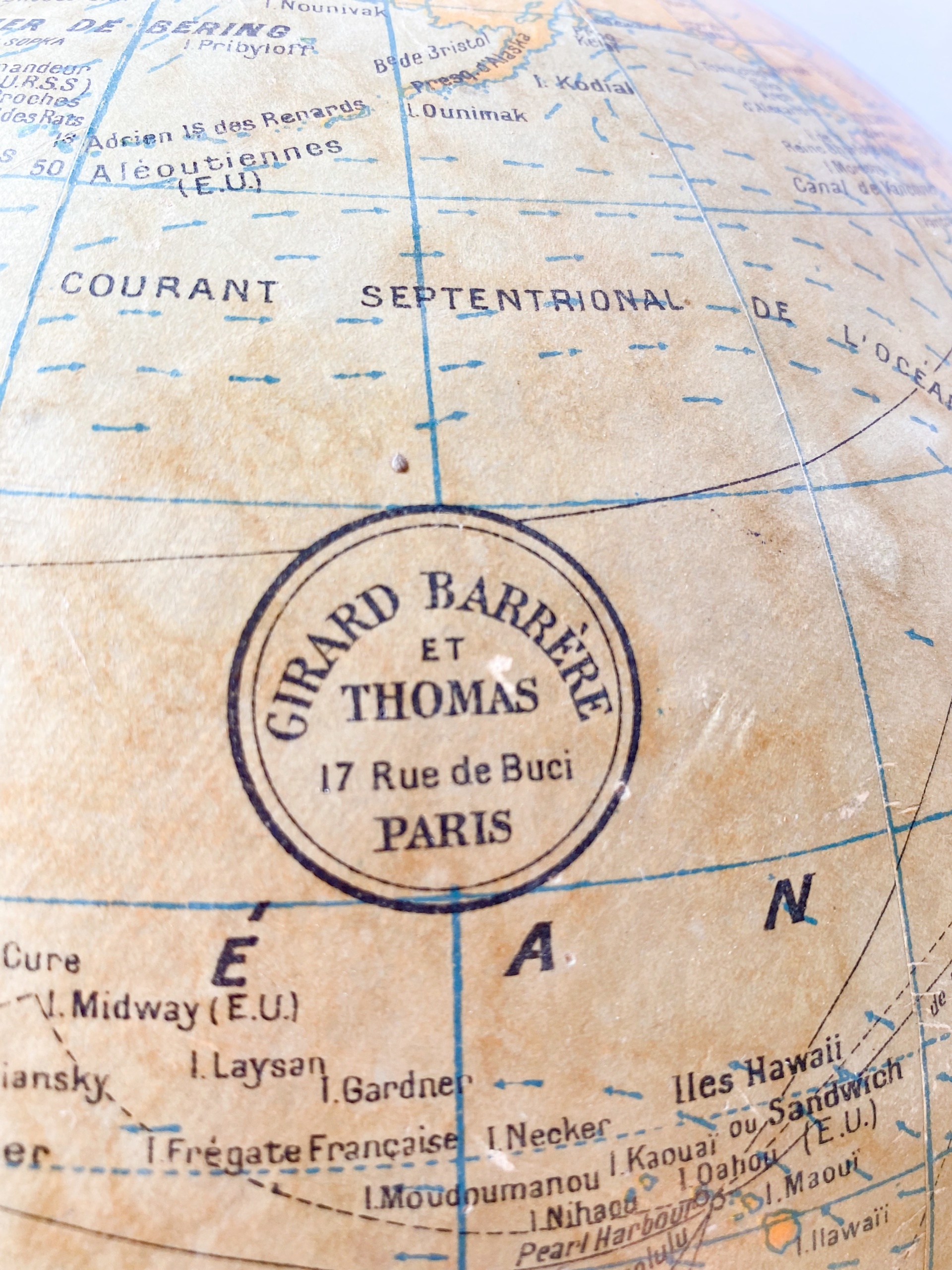 Globe de diamètre environ 40 cm, en bon état général légèrement enfoncé sur son pied. Très décoratif.