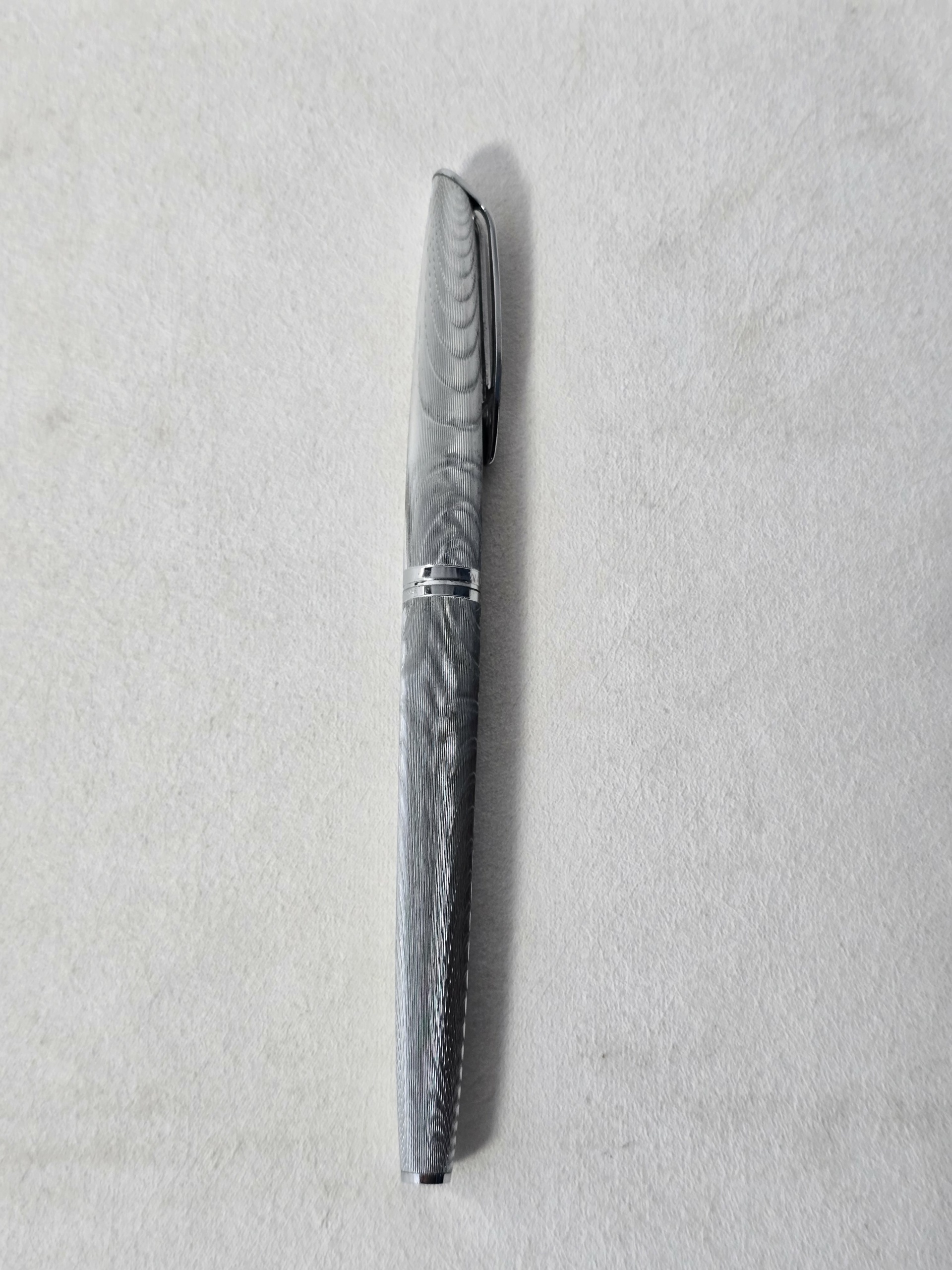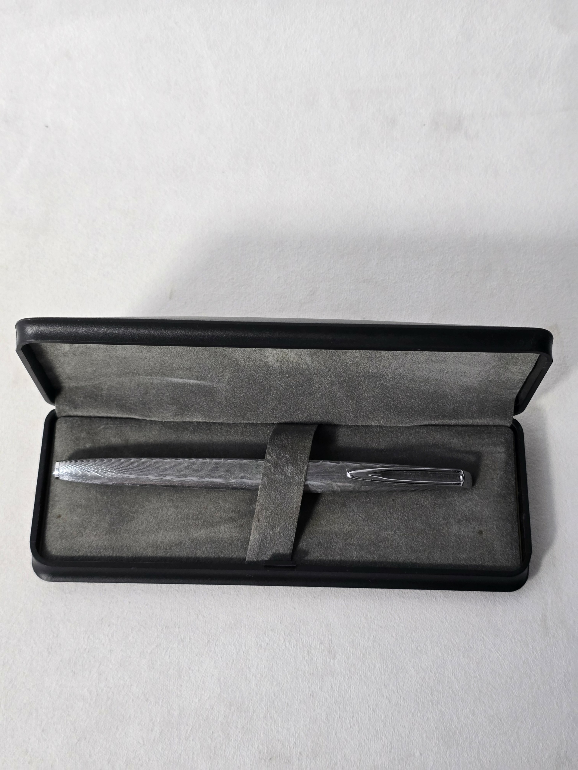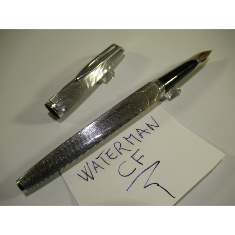 Stylo plume WATERMAN CF avec convertisseur fourni, plume or « 18 K – 750 », moiré couleur argent, très bon état général, pour collection ou pour écrire.