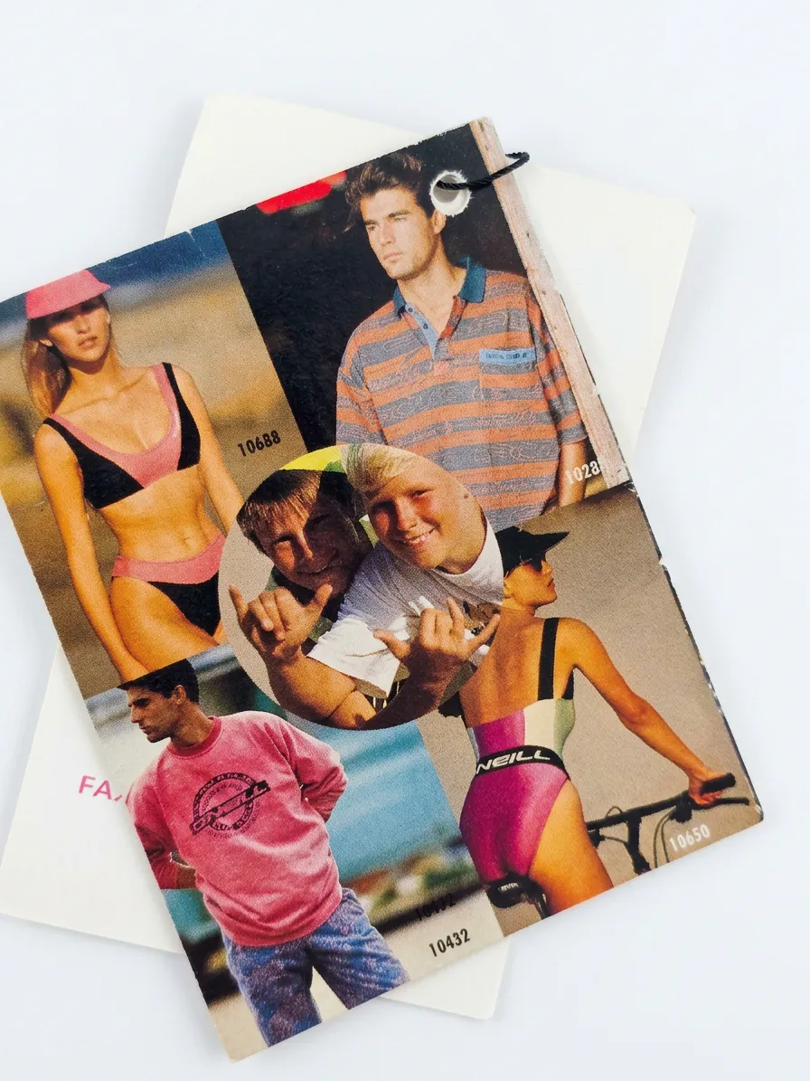 Cette veste O’Neill vintage provient du programme Winter 91 et conserve sa carte d’origine indiquant “Salesman Sample”, avec la référence ART No. 15038.